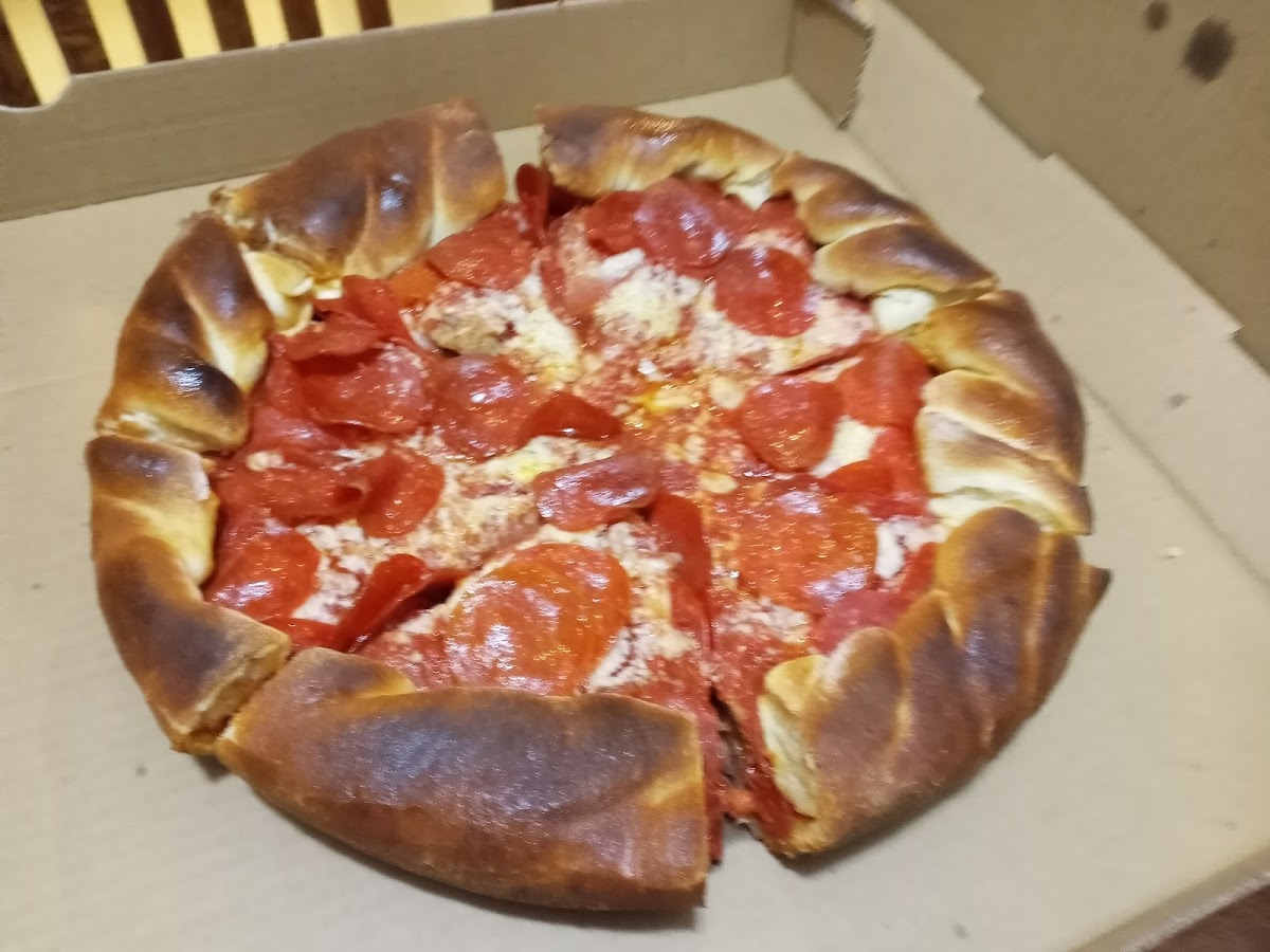 We got the deep dish meat celebration and a wonderful salad. It was as good as it looks, if deep dish is you ticket then Tuscany Pizzeria is your huckleberry. Thanks and be careful